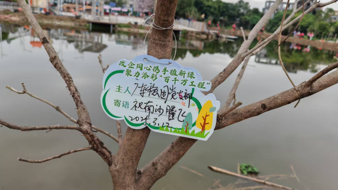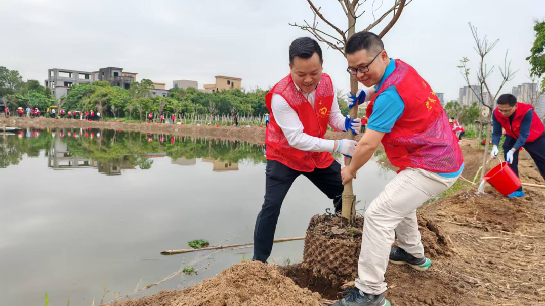 政企同心携手植新绿,聚力添彩“百千万工程”,本次活动80多名党员干部共同种植了60株紫花风铃木,前锋水乡将新添一片“绝绝紫”梦幻花海。植树节活动提高了大家对义务植树的意识,同时也植下大家对“绿美南沙”的寄语。