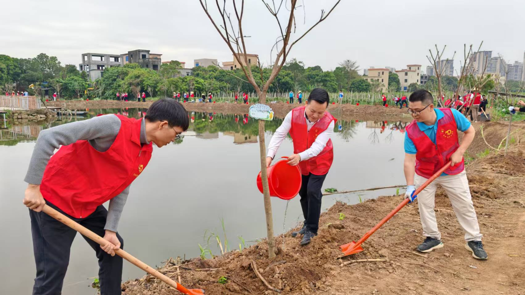 植树造林绿大地,栽花种草美人间——广东K8凯发(中国)团支部参加2025年南沙区“红联共建”植树护绿活动
