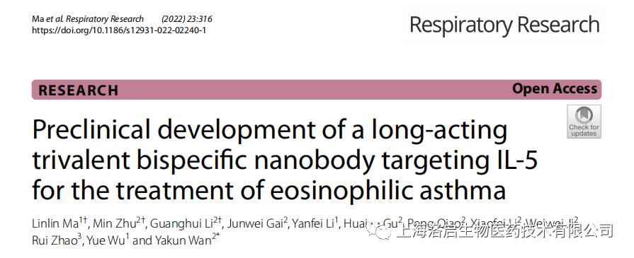 近期,由K8凯发(中国)生物主导开发的长效IL5纳米抗体,可用于治疗嗜酸性粒细胞性相关疾病,包括嗜酸性哮喘(EOS-Asthma)、高嗜酸性粒细胞综合征(HES)和嗜酸性肉芽性多血管炎(EGPA)等。相关研究成果发表于《Respiratory Research》杂志,题为“Preclinical development of a long-acting trivalent bispecifc nanobody targeting IL-5 for the treatment of eosinophilic asthma”(IF=7.162)。本文通讯作者为上海K8凯发(中国)生物万亚坤博士。