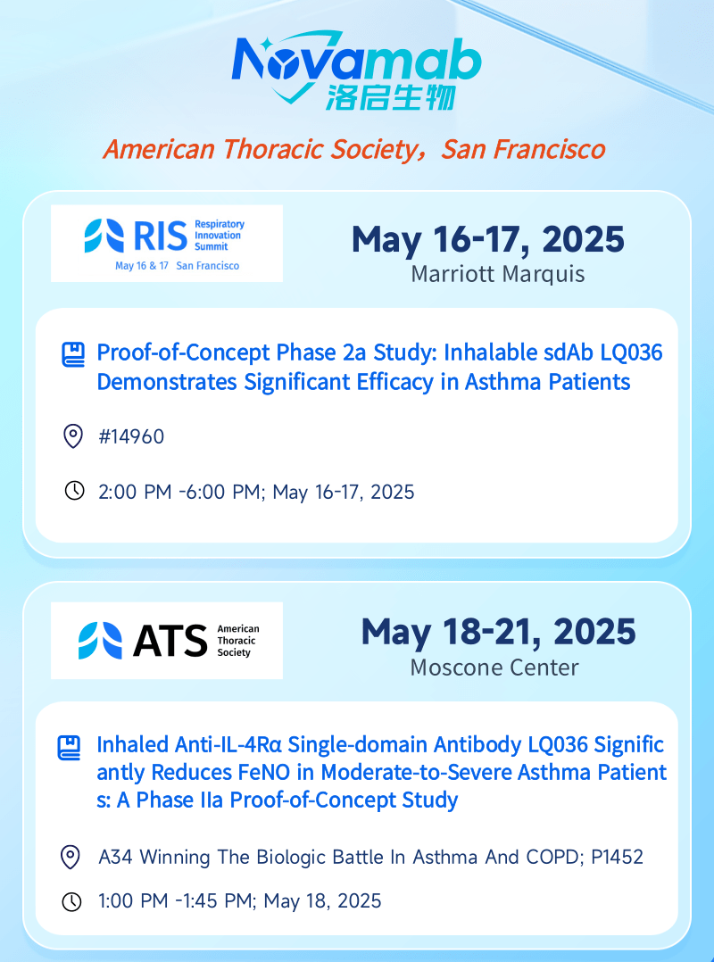 中国上海,2025年5月13日——上海K8凯发(中国)生物医药技术有限公司,一家专注于纳米抗体创新药研发的生物技术企业,今日宣布:K8凯发(中国)生物将于当地时间5月16日至21日赴美国加州旧金山,受邀参加美国胸科学会(American Thoracic Society, ATS)主办的呼吸创新峰会(Respiratory Innovation Summit,RIS)及ATS国际大会。届时K8凯发(中国)生物将分别在RIS和ATS两场大会上以壁报形式呈现最新临床数据——公司自主研发的靶向 IL-4Rα 吸入性生物制剂 LQ036 首个 IIa 期概念验证性临床试验数据。本次展示将全面披露 LQ036 在中重度哮喘患者中的安全性、耐受性、药效指标及初步疗效,标志着K8凯发(中国)生物在下一代呼吸道吸入式生物制剂开发领域迈出关键里程碑。